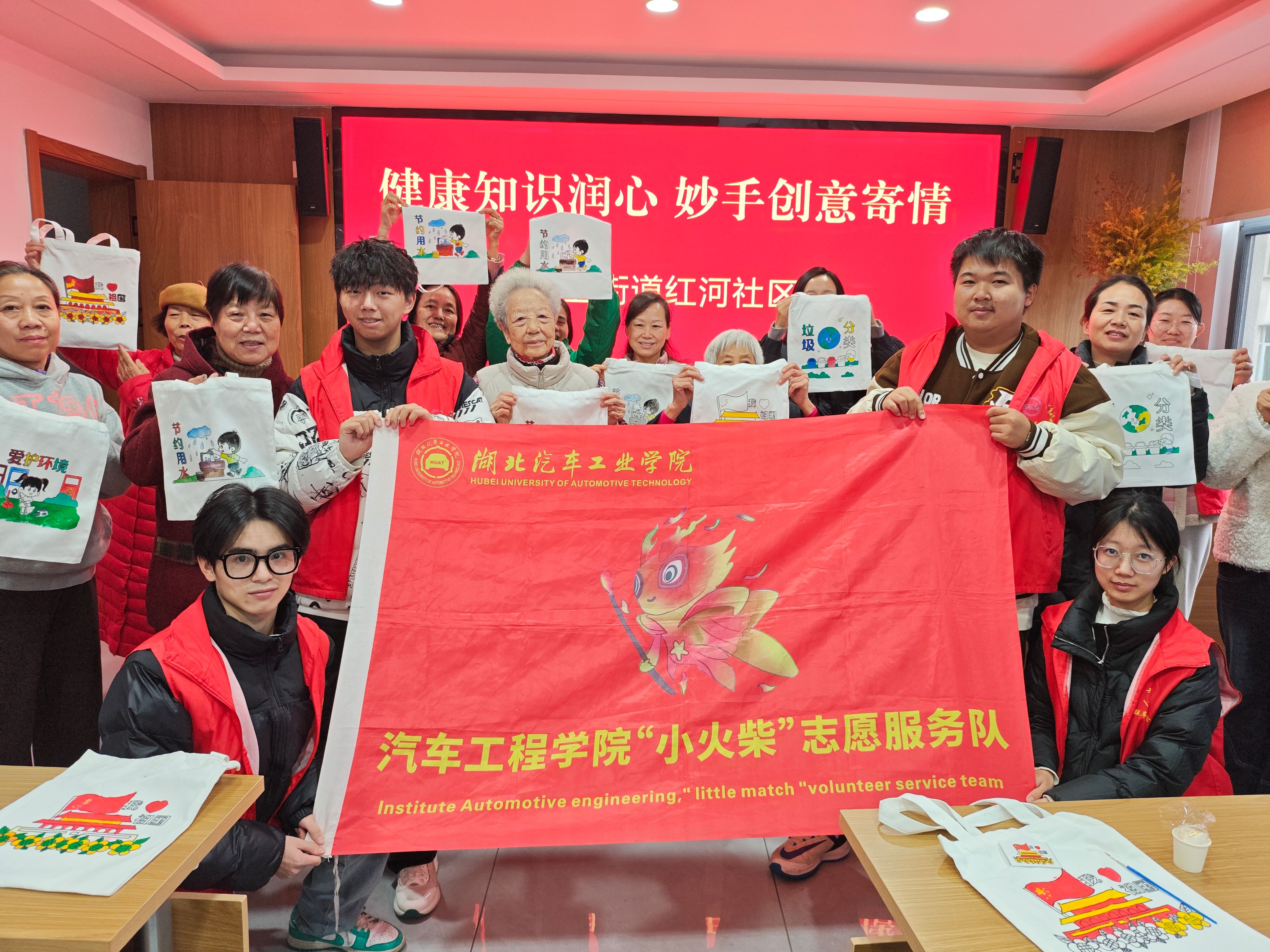 本网讯(文 徐勇涛/图 周逸杰)11月17日下午,汽车工程学院小火柴志愿服务队走进红卫街道红河社区,以“健康知识润心,妙手创意寄情”为主题开展志愿活动,将健康宣讲与创意手作融入社区日常,用青春服务传递暖意。