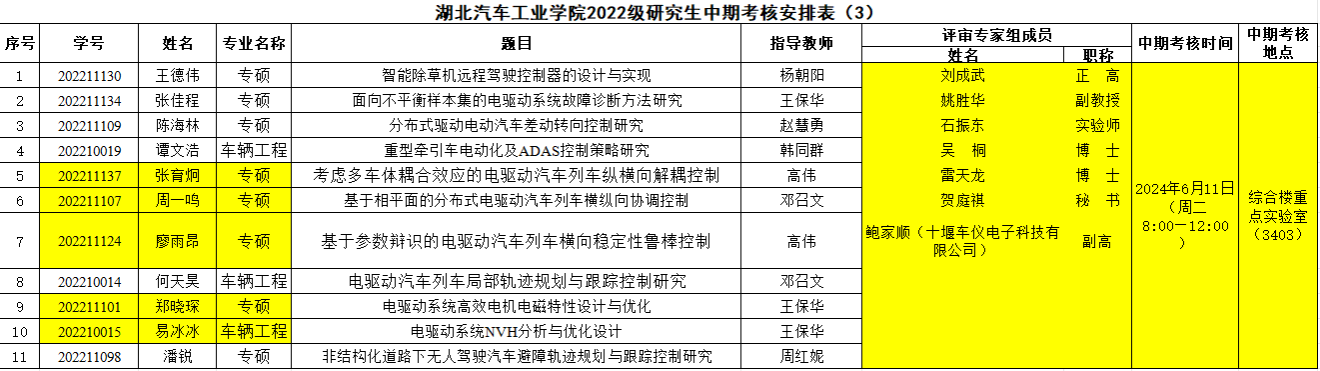 汽车工程学院2022级研究生中期考核安排