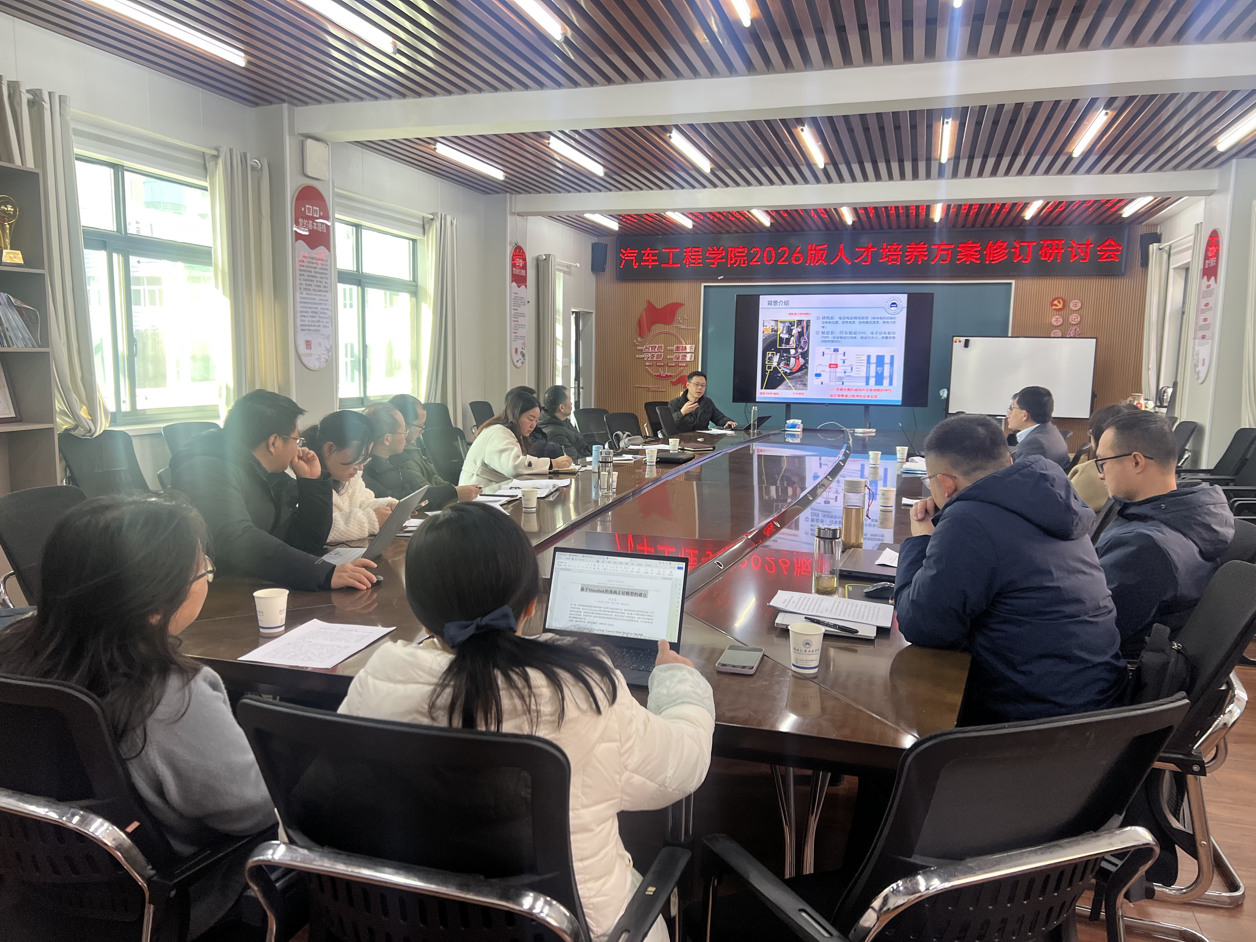 本网讯(图/文 王婕颖)1月7日上午,汽车工程学院在党员活动会议室1201召开专业负责人例会暨2026版人才培养方案修订专题研讨会。校教学督导冯樱教授、湖北名师郝琪教授、学院教学副院长董焱章教授、各专业负责人、各系主任以及骨干教师代表等参加本次会议。本次会议由教学院长董焱章教授主持。