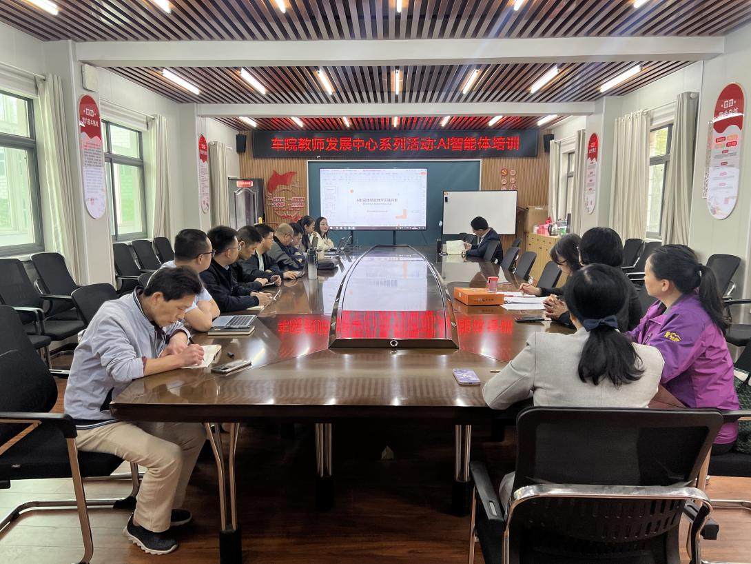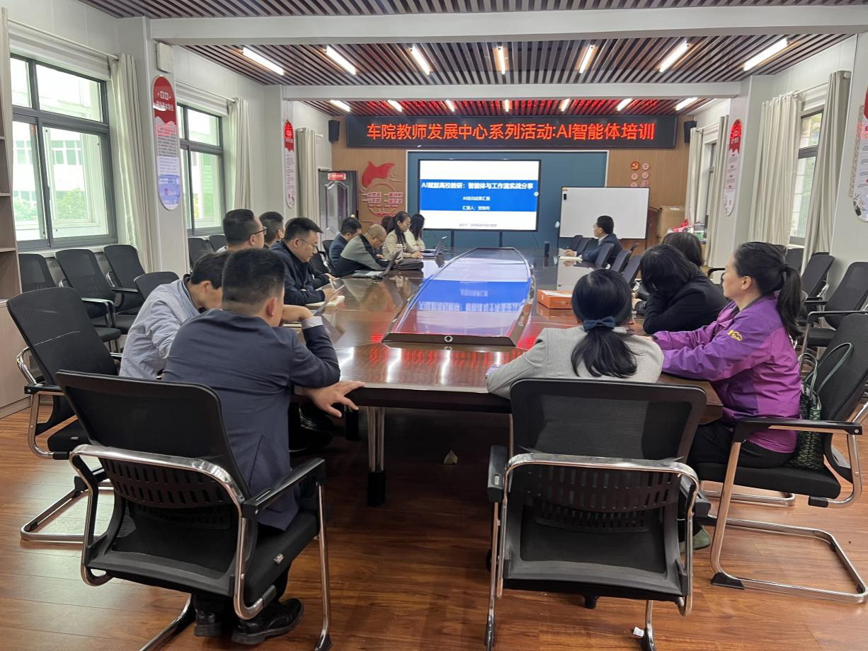 本网讯(图/文 王婕颖) 4月15日下午,汽车工程学院教师发展分中心在党员活动会议室1201组织开展“AI智能体”专题培训活动。本次培训特邀覃玄、贺焕利两位老师担任主讲,分享解读2026年湖北省高教学会组织的武汉AI智能体培训核心内容。学院资深教授、各专业负责人、系部主任、数智化课程申报教师等参加培训。会议由教学院长董焱章教授主持。