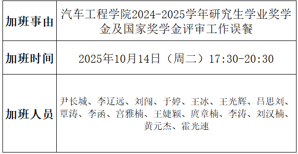 汽车工程学院2024-2025学年研究生学业奖学金及国家奖学金评审工作误餐