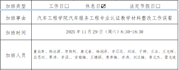 汽车工程学院汽车服务工程专业认证教学材料整改工作误餐公示