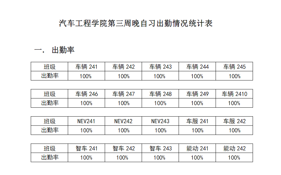 【督学正风】汽车工程学院2024-2025学年第二学期第三周早自习出勤情况