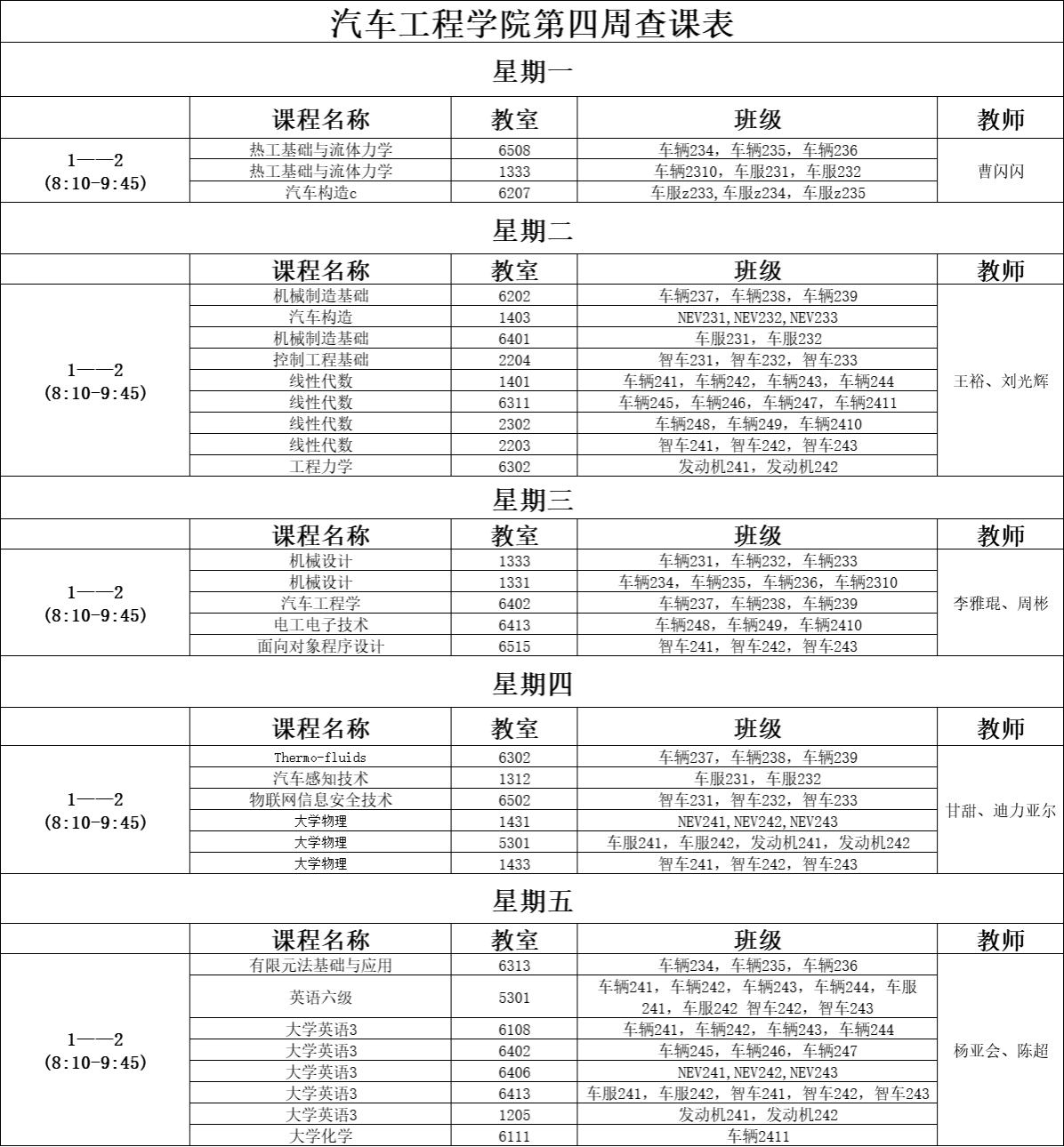 【督学正风】汽车工程学院9月15日-9月19日“早间一小时”下沉安排