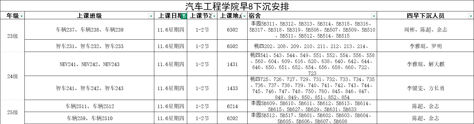 【督学正风】汽车工程学院11月6日“早间一小时”下沉安排